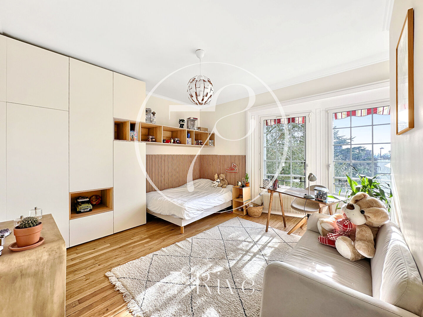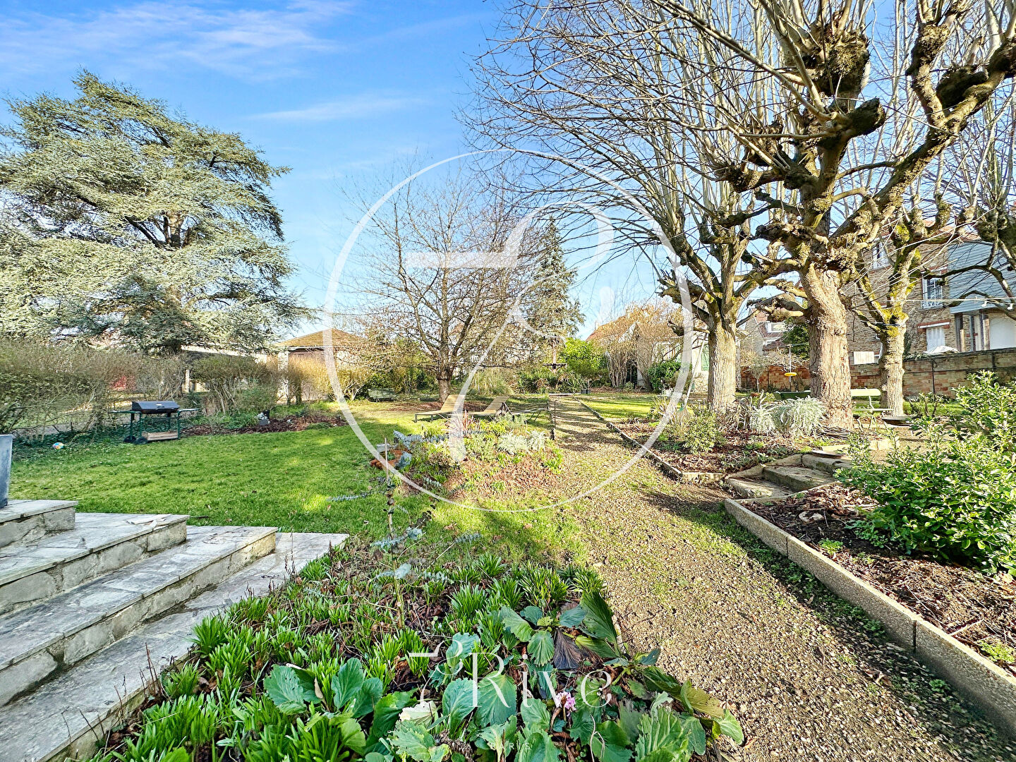 Demeure calme et lumineuse rénovée début 2024 (hors salles d'eau et salle de bains). Construction raffinée avec matériaux nobles, parquet d'origine, bois brut, marbre, cheminées. Séjour, salle à manger et 3 chambres exposés sud. Très beaux volumes et belle HSP (3m). Nombreux rangements intégrés. Chauffage individuel au gaz (chaudière Ferroli de 2000 - bruleur changé en 2008). Fenêtres PVC double vitrage avec verre anti-effraction. Alarme. Portail automatique avec interphone. Fibre. Assainissement collectif. Toiture refaite en 2000. Persiennes métalliques (peinture refaite en 2020). Terrain clos de 1 704 m2 sans vis à vis et piscinable. Atelier de 18m2 et dépendance de 2 pièces à rénover de 26m2 environ sur la partie arrière du terrain. Garage 2 voitures. Gare à 5 mn à pied (ligne J).