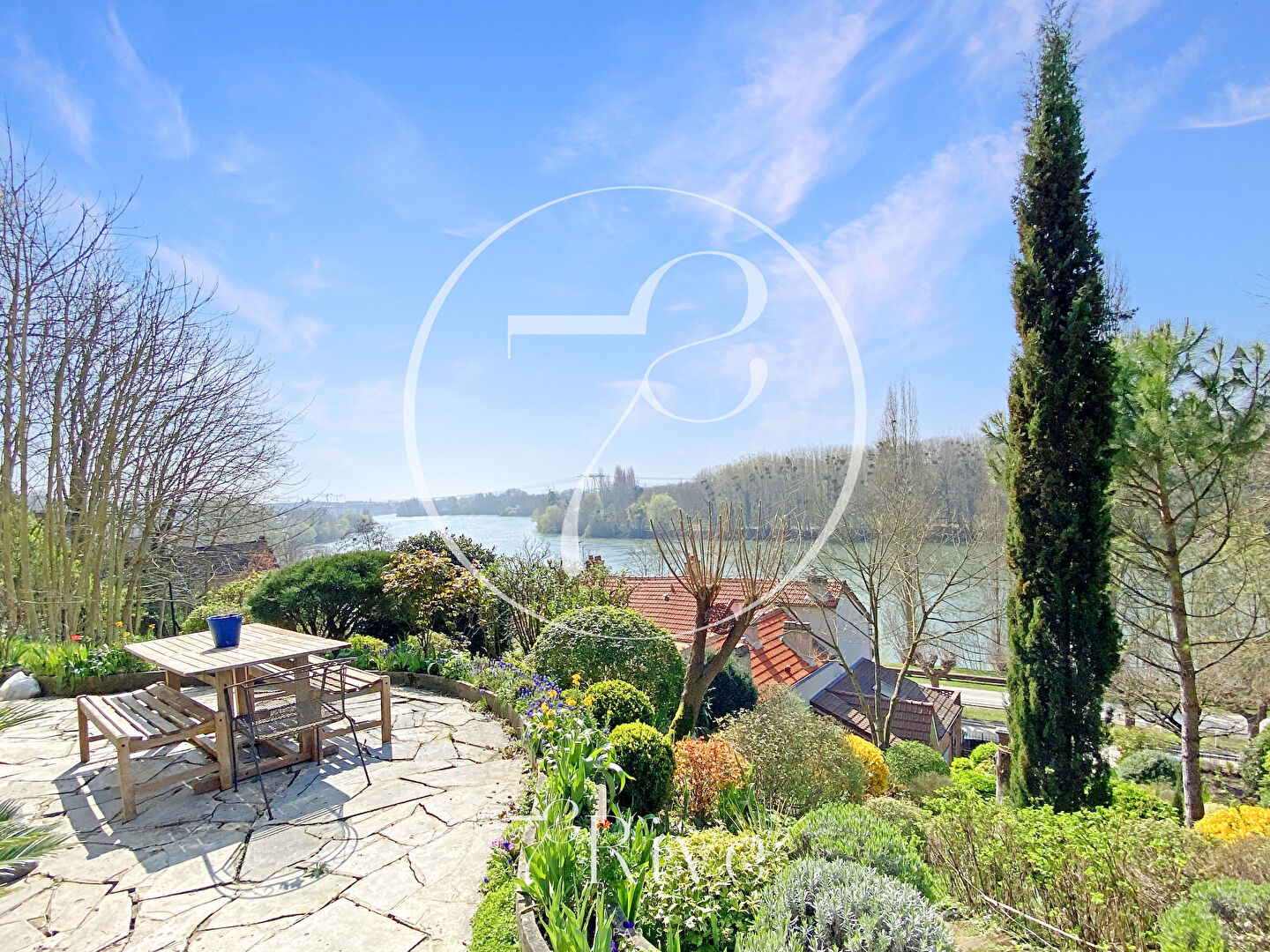 Secteur résidentiel très recherché, beaux volumes, luminosité, terrasse et jolie vue sur la Seine pour cette demeure d'exception aux portes de Paris.